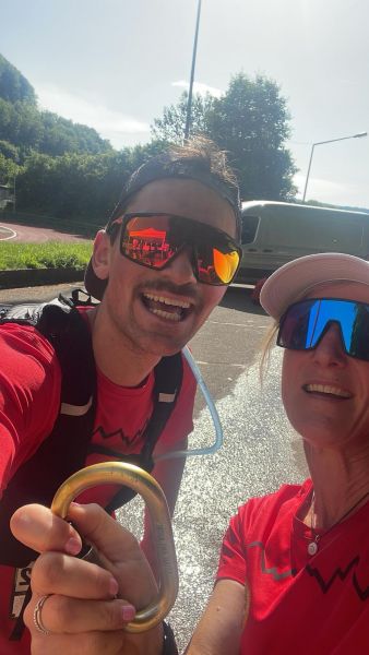 Der Staffelstab? Ein goldener Karabiner – passend zur Bergwacht.