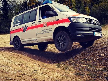 Sechs Einsatzkräfte nahmen deshalb am 3.10. an einem Geländefahrtraining der Bergwacht Württemberg, auf dem Truppenübungsplatz in Stetten am kalten Markt teil. Mit dem Bergrettungsfahrzeug, einem VW T6 4motion und dem hochgeländegängigen All-Terrain-Vehicle wurde das Fahren in schwierigem Gelände trainiert.