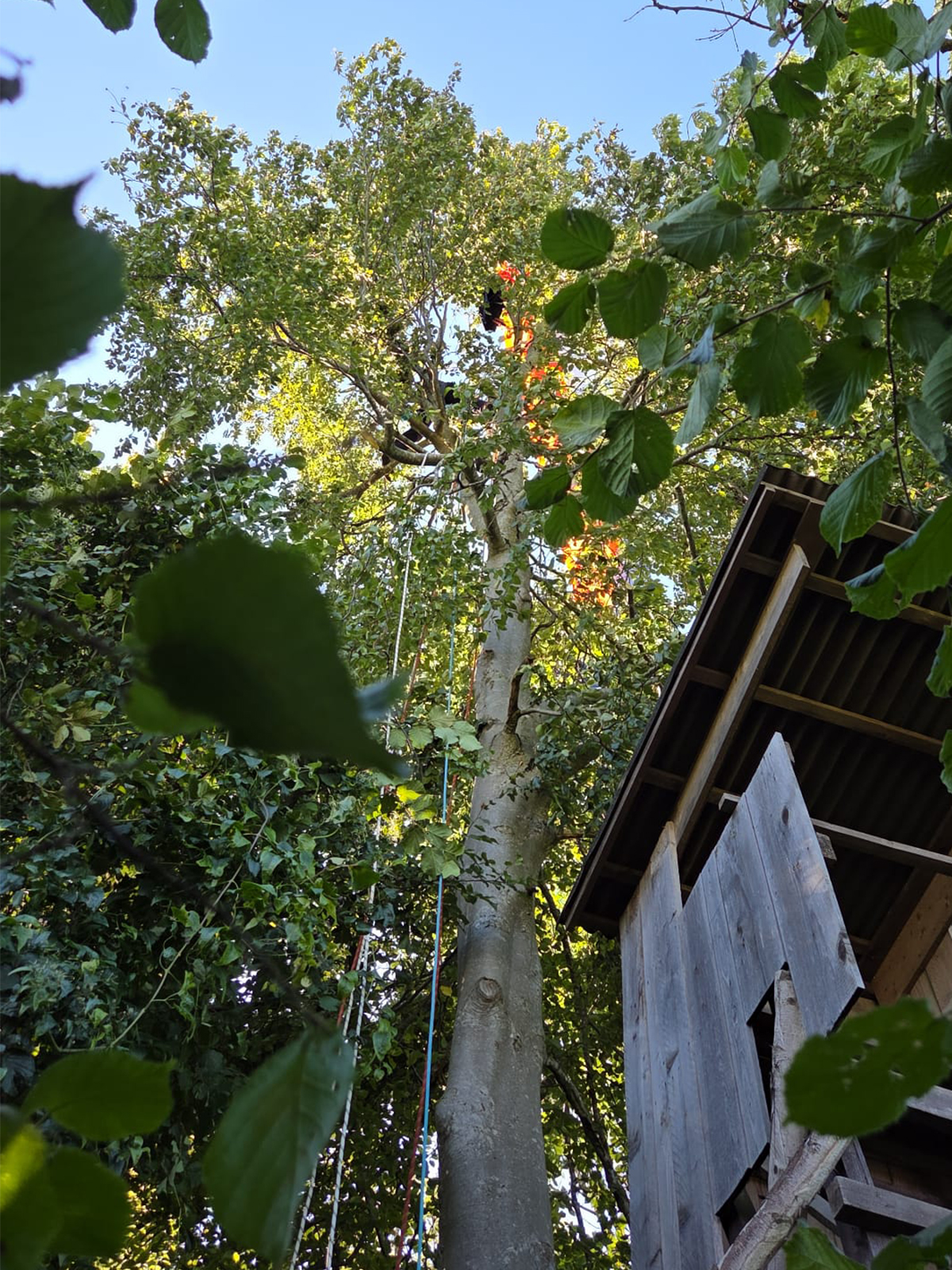 Im Anschluss folgte die aufwendige Bergung des Schirms aus der Baumkrone.