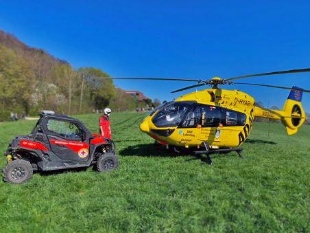 Aufgrund der großen Sturzhöhe wurde auch der Rettungshubschrauber Christoph 22 alarmiert. Dieser setzte den Notarzt im Schwebeflug nahe der Burgruine ab und landete anschließend an der nahen Spielburg.
